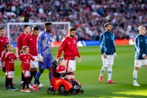 在对阵曼城的两天前,鲍比受邀来到卡灵顿训练基地参加电动轮椅足球活动,并在那里惊喜地见到了B费。鲍比、他的父亲特伦斯和母亲克莱尔在卡灵顿等待活动开始时,B费结束了训练后出现了。