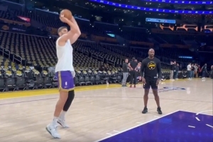 上演湖人生涯首秀?克莱伯赛前参加投篮训练 练了一波近筐投篮