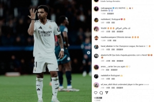他也在赛后通过社媒晒出自己的庆祝照,并配文:“欧冠之夜💫👋🏾⚡️双响⚽️⚽️”。