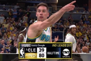 体育资讯5月12日讯 东部半决赛G4,步行者今天在主场迎战骑士。半场结束时,步行者80比39领先。