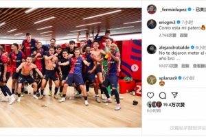 巴萨中场费尔明比赛最后时刻攻入精彩进球,但被判罚手球在先进球无效,赛后费尔明在社交媒体上庆祝胜利:“美妙的一天,我们非常接近达成目标,感谢巴萨球迷们的支持。”