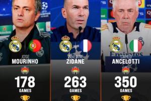350场比赛,15座冠军奖杯(欧冠×3、世俱杯×3、欧洲超级杯×3、西甲×2、国王杯×2、西班牙超级杯×2)