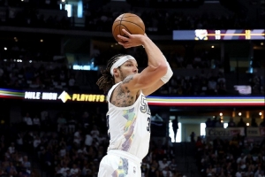 Shams说:“消息人士告知我,戈登遭遇了左腿筋二级拉伤,他预计需要一个月才能从这一伤势中恢复。尽管戈登在竭尽全力设法出战这场在俄克拉荷马城的西部半决赛抢七大战,他很有可能将缺席剩余季后赛,克服这次腿筋伤病出战从身体层面上变得基本不可能。”