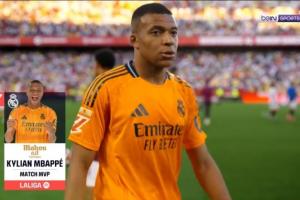 连续五场破门,姆巴佩当选皇马2-0塞维利亚全场最佳球员