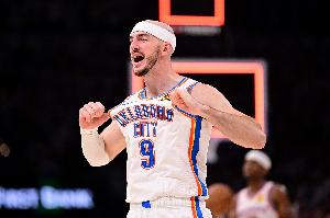 下半场他首发面对约基奇使出牛皮糖式防守,让后者单节仅出手1次,雷霆也直接将比赛打入垃圾时间。