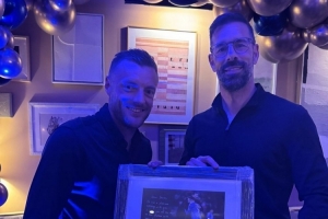 莱斯特城主帅范尼更新社媒动态,晒出与瓦尔迪的合照,配文:“500场/200球,传奇。”