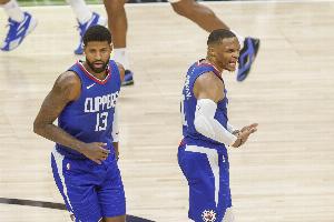 乔治:82场比赛总有几场想划水 所以我需要威少这种队友帮我扛