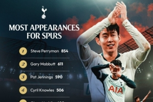 体育资讯1月24日讯 欧联杯联赛阶段第7轮,热刺客战霍芬海姆。据统计,这是孙兴慜代表热刺出战的第436场比赛,他也成为热刺队史出场次数第十多的球员。