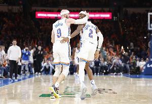 乔-约翰逊表示:“卡鲁索和华莱士在抢七中起到了很大的作用,他们得分不多,但他们在防守端破坏性很大,他们防守很好,3次抢断、2次抢断,那让雷霆得到不少轻松得分的机会。下一轮系列赛对雷霆很特别,我认为他们的角色球员将会有大的影响。”