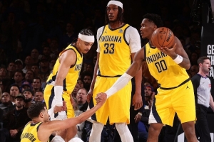 步行者五名首发中四人曾被交易。国王在选中哈利伯顿的15个月后就将他送走,西亚卡姆的职业生涯始于发展联盟,唯一未被交易过的首发中锋特纳不久前在球星看台的亲笔文章中调侃自己“像被摆上货架六年了”。