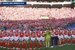 赛后,阿森纳女足众将来到看台前与球迷庆祝,她们肩并肩,见证满看台的枪迷们合唱The Angel (North London Forever)。