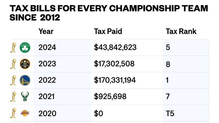自12年以来各冠军队奢侈税账单&排名:22勇士1.7亿高居第一🤯