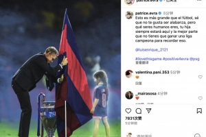 在大巴黎全队庆祝冠军的时候,主帅恩里克纪念女儿的方式令埃弗拉动容。埃弗拉更新社交媒体向恩里克表达敬意。