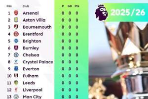阿森纳再登顶😇英超官方清零积分榜:2025/26赛季枪手维拉暂前2