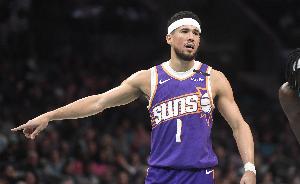 上半场比赛,布克进攻端发挥出色,里突外投手感火热,几乎弹无虚发,他两节单节得分都上双!