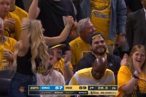 指天庆祝🤣G4半场最后时刻 哈利伯顿终于拿到总决赛第一个罚球