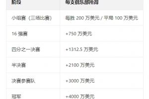 史诗级!一图看清世俱杯奖金分配:小组赛赢1场200万,冠军4000万