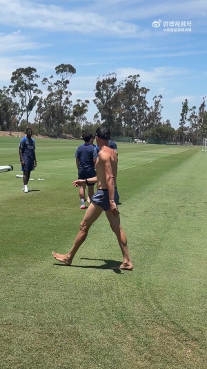 55岁身材相当棒🦶巴黎主教练恩里克训练场赤脚在草地上行走