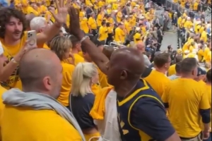 老哈利伯顿退场时和步行者球迷互动 还合影留念