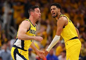 体育资讯6月20日讯 NBA总决赛G6,步行者108-91战胜雷霆,总比分扳成3-3。