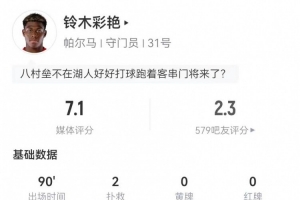 体育资讯1月26日讯 帕尔马在本轮意甲被米兰3-2逆转,日本国门铃木彩艳本场数据如下: