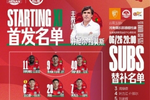 云南玉昆VS河南俱乐部酒祖杜康 首发及替补队员名单