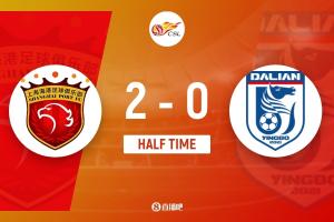 上半场比赛结束,上海海港主场暂时2-0领先大连英博。