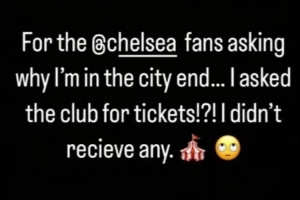 随后喝水哥对此进行了解释:“对那些问我为什么在曼城球迷区的切尔西球迷解释下,我向俱乐部要了票!?!我没有收到。”,喝水哥还配上了一个马戏团以及翻白眼的表情。