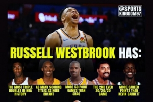 体育资讯6月29日讯 今天,NBA名宿奥尼尔转发了一则关于威少多项数据荣誉的报道,详情如下: