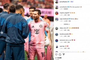 体育资讯6月30日讯 巴黎在世俱杯16强战4-0淘汰迈阿密国际,边后卫阿什拉夫在赛后通过社媒晒照纪念。