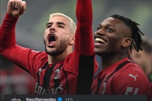 这是特奥对莱奥的寄语,最后用上了著名的合成词“THEAO”,将两人的名字融合在一起,就像他们这些年在米兰场上并肩作战一样。