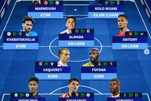 中场:克瓦拉茨赫利亚(巴黎,7000万)、卡奎雷特(科莫,1500万)、阿尔马达(里昂,租借)、福法纳(雷恩,2000万)、安东尼(贝蒂斯,租借)