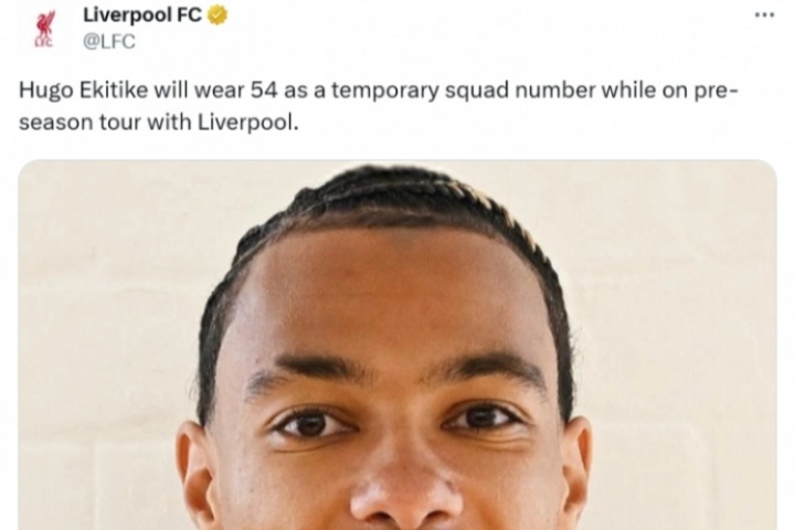 体育资讯07月24日讯 利物浦官方宣布,新援前锋埃基蒂克将在季前赛身穿54号,作为临时球衣号码,他在利物浦的正式球衣号码还有待确认。
