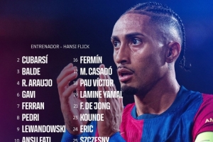 体育资讯1月29日讯 北京时间明天凌晨4点,巴萨将在欧冠第8轮比赛中主场对阵亚特兰大,巴萨公布了此役的球员名单,莱万、亚马尔、拉菲尼亚、法蒂在列,佩德里回归,克里斯滕森、奥尔莫因伤缺席。