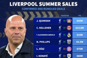 德转预测利物浦今夏卖人:总转会费3.053亿欧元