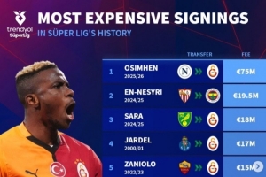 德转列土超历史买人榜:奥斯梅恩断崖领跑,恩内斯里&扎鸟在列