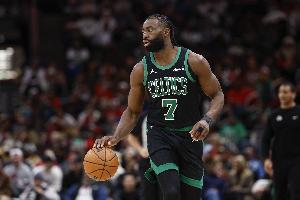 上半场,凯尔特人球星杰伦-布朗稳定发挥,打了18分钟11投6中,三分3中0、罚球4中3拿到15分4篮板2助攻1抢断,正负值+15。