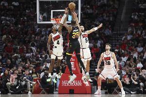 球员A,上赛季每75回合场均27分6.1板4.3助3.1失误1.3帽0.8断,高于平均真实命中率6.6%,EPM值+3.1,净效率-1.0,在场比不在场的差距+5.6;
