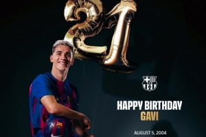 体育资讯8月5日讯 今天是巴萨中场加维的21岁生日,巴萨官方为他送上祝福。