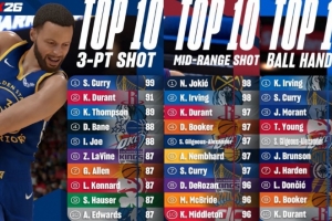 体育资讯8月13日讯 今天,美媒Hoop Muse汇总了目前已经公布的库里《2K26》能力值。