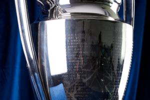 明年会是谁?欧冠奖杯运抵抽签现场,杯身刻满历届冠军