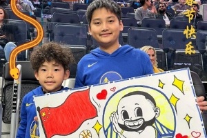 🤩画得真好!中国小球迷远道而来看库里 现场举牌支持