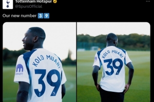 热刺官方宣布,这位法国前锋将在新赛季身披39号球衣。