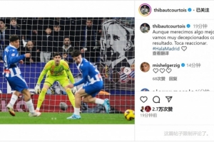 库尔图瓦在社交媒体上晒出比赛照片,并写道:“尽管我们的表现配得上更好的结果,但我们仍然对失利感到非常失望,是时候做出反应了。”