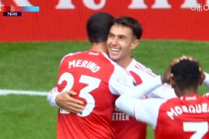 头顶脚踢!苏维门迪头球破门本场完成双响,阿森纳3球领先森林