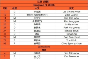2025-26赛季亚冠精英联赛 联赛阶段 江原vs上海申花首发名单