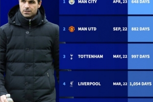据统计,阿森纳上一次在英超输给其他Big6球队还在23年4月,当时的对手正是曼城。以下为阿森纳在英超上一次输给其他big6球队的时间以及相隔天数: