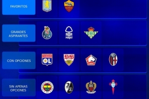 体育资讯9月25日讯 本赛季欧联杯拉开帷幕,德转也为本赛季参赛球队争冠希望做出评级,其中维拉与罗马最被看好,具体如下: