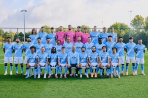 曼城新赛季全家福:瓜帅C位,左侧为福登,右侧为B席