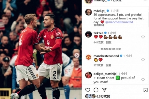 曼联后防铁闸!德里赫特:50次出场,拿下3分,感谢所有支持!